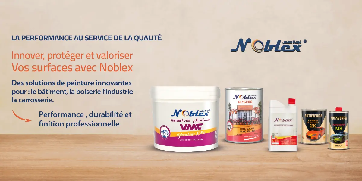 Les peintures NOBLEX Bâtiment sont spécialement conçues pour répondre aux besoins des chantiers résidentiels, commerciaux et publics. Elles garantissent une application facile, une adhérence optimale et une excellente résistance face aux conditions climatiques et à l’usure du temps. Qu’il s’agisse de murs intérieurs, de façades extérieures ou de sols, nos solutions allient esthétique, protection et durabilité pour valoriser chaque projet de construction ou de rénovation.